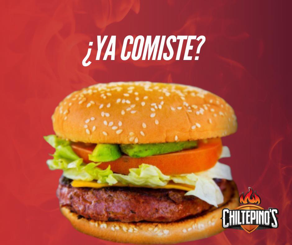 200 gr de 100% carne de res con queso amarillo, cebolla asada, chile california, tomate, lechuga y aguacate...(con aros de cebolla, papas a la francesa ó sazonadas)