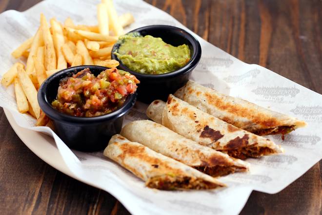 80 gr de machaca deliciosamente preparada, envuelta en tortilla de harina, acompañado de papas a la francesa y guacamole.