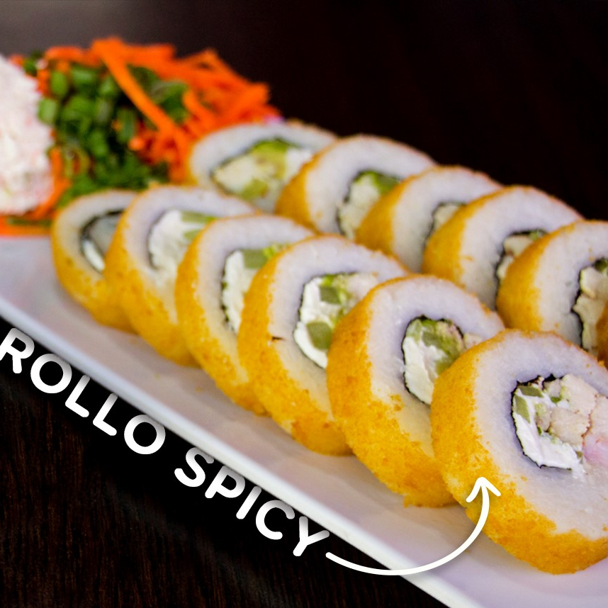 Con alga, relleno de pollo empanizado en salsa Búfalo, Philadelphia, pepino y aguacate, acompañado de Tampico, zanahoria y cebollín, ordénelo natural o empanizado
