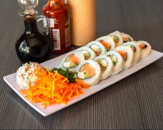 Con alga, relleno de salmón fresco, Philadelphia, pepino y aguacate, acompañado de Tampico, zanahoria y cebollín, ordénelo natural o empanizado