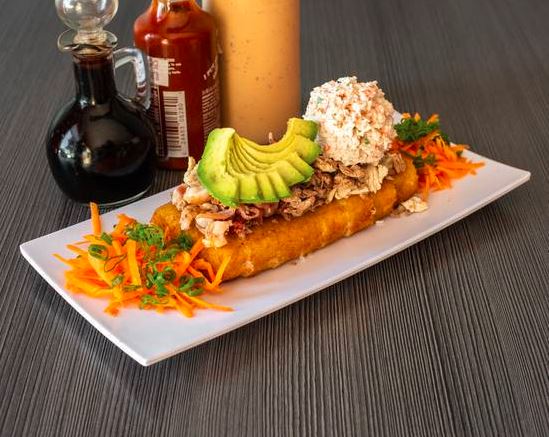 Con alga relleno de pollo camaron tocino chile caribe toreado Philadelphia, pepino y aguacate, acompañado de Tampico, zanahoria y cebollín, ordénelo natural o empanizado