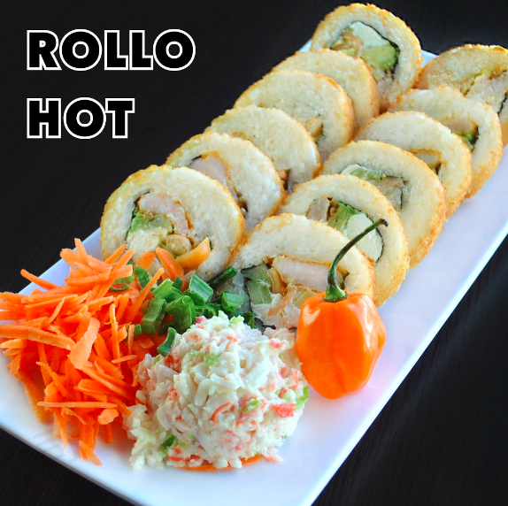 Con alga, relleno de res, pollo, chile habanero toreado, pepino, aguacate y Philadelphia. Incluye tampico, zanahoria y cebollín. Pídelo empanizado o al natural.