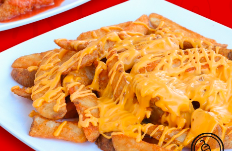 500 grs. de papas sazonadas cubiertas de queso amarillo.