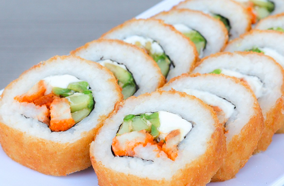 Con alga, relleno de camarón, pepino, aguacate y Philadelphia. Incluye tampico, zanahoria y cebollín. Pídelo empanizado o al natural.