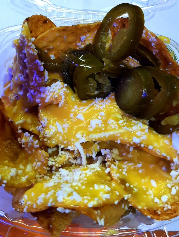 1 Tostitos verdes de 57 g, queso blanco, queso amarillo, jalapeños para nachos.