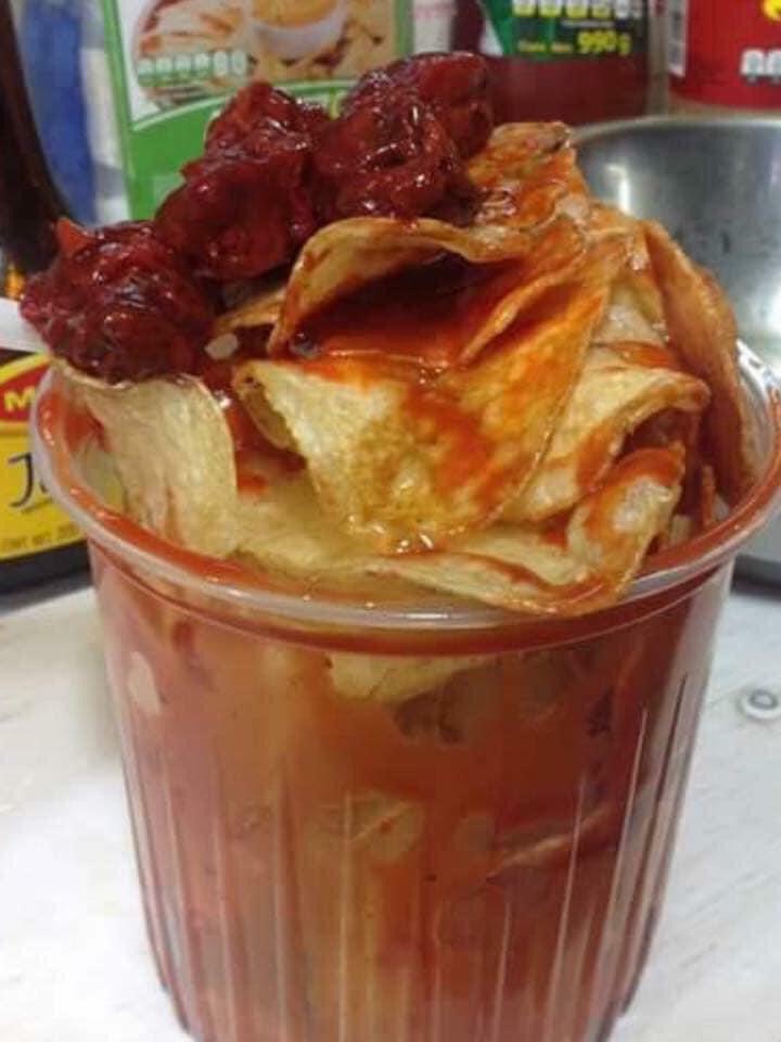 Papas fritas naturales acompañadas de jugó maggi, salsa china, salsa inglesa y la especialidad de la casa. Salsa de siete chiles, limón, picante, chamoy y Tajín. La salsa se envía aparte para que no se remojen las papas.