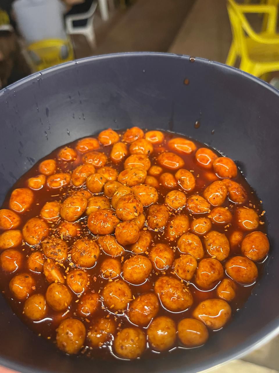 140 Gramos de aceitunas, preparadas con salsa cinema, clamato, tajín y limón.