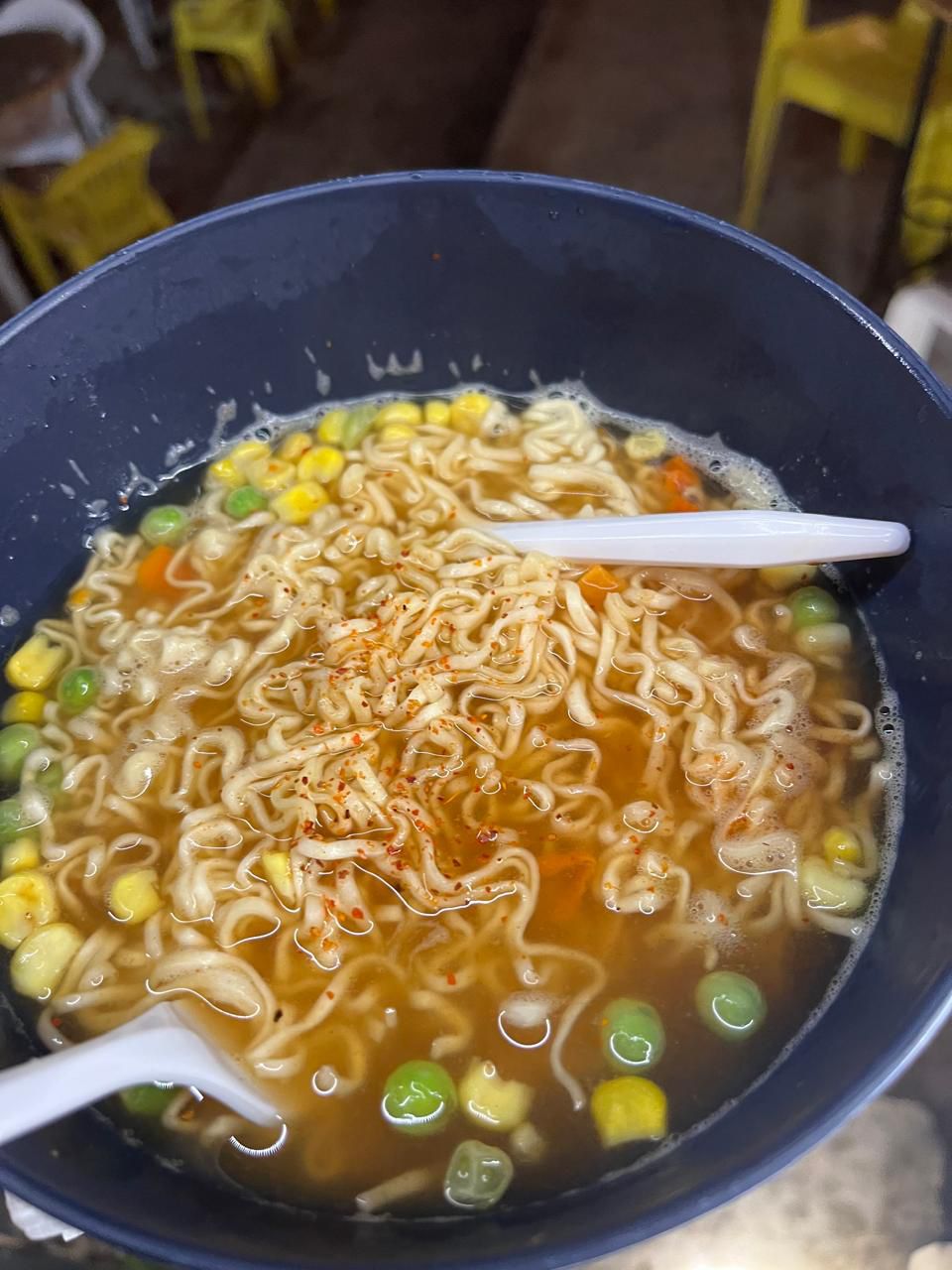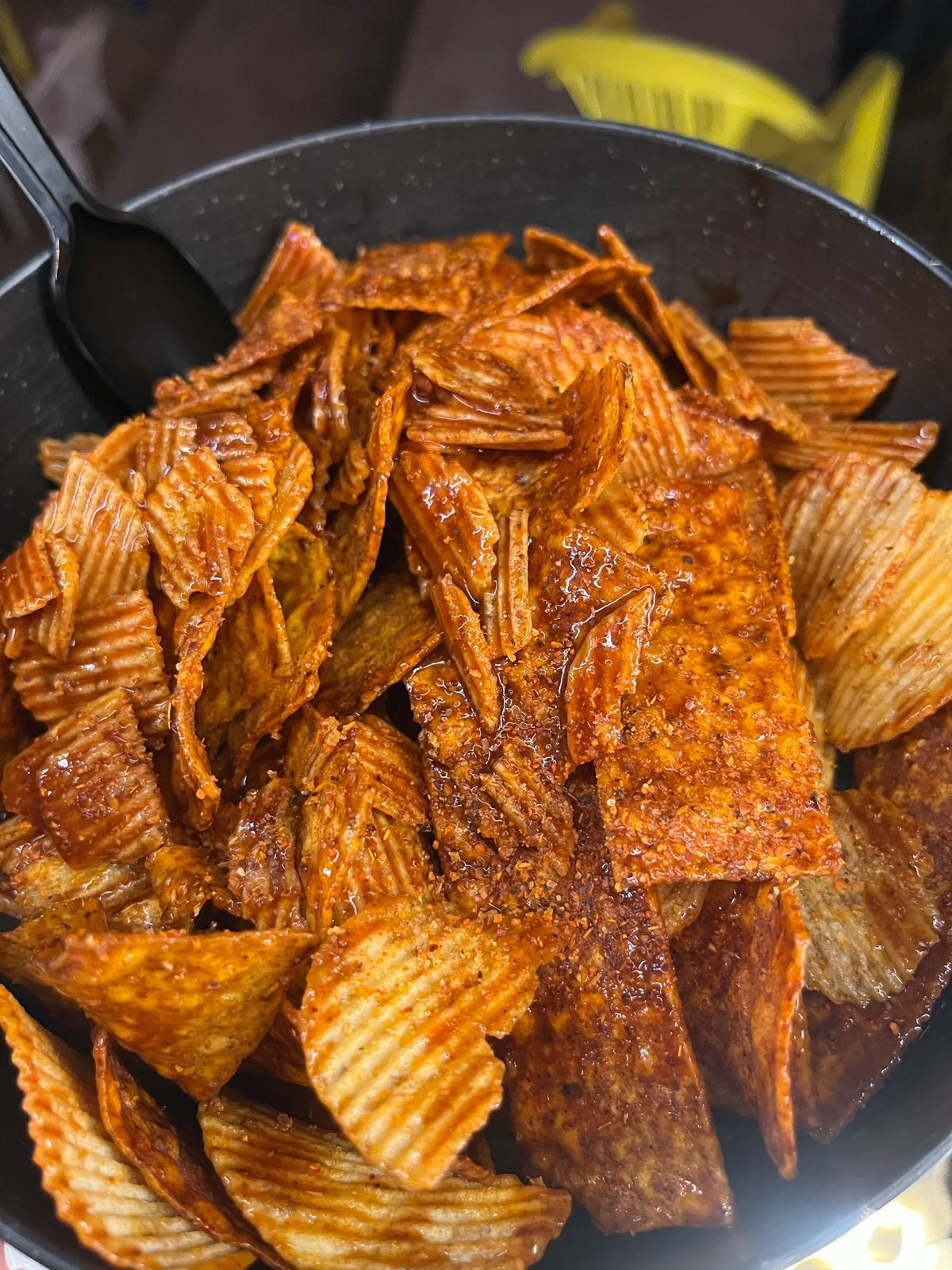 Maruchan, 1 sabritas con salsa cinema, limón y tajín.