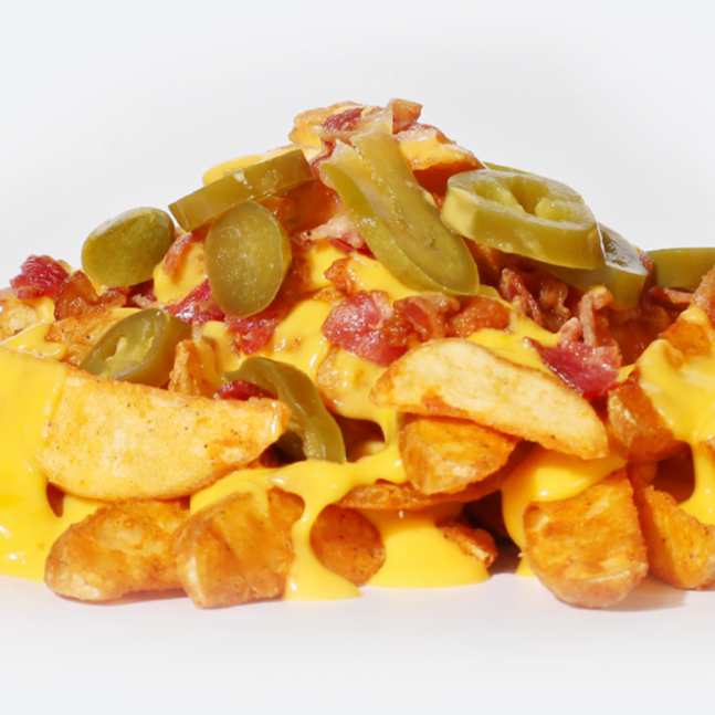 Papas Sazonadas CS con queso , tocino y jalapeño