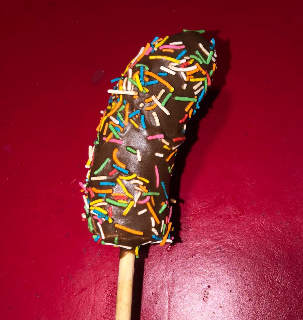 Plátano cubierto de chocolate.