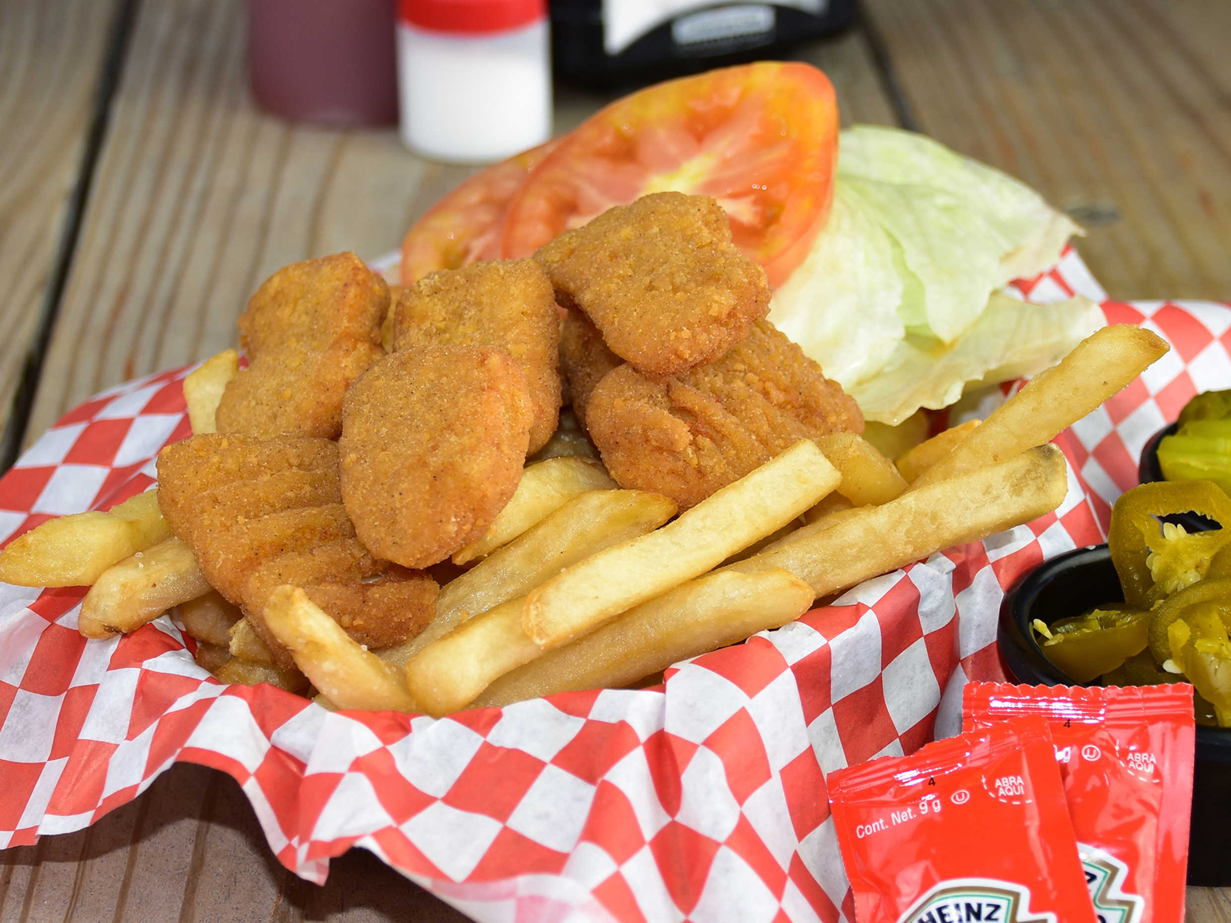 8 piezas de nuggets acompañadas con papas a la francesa.
