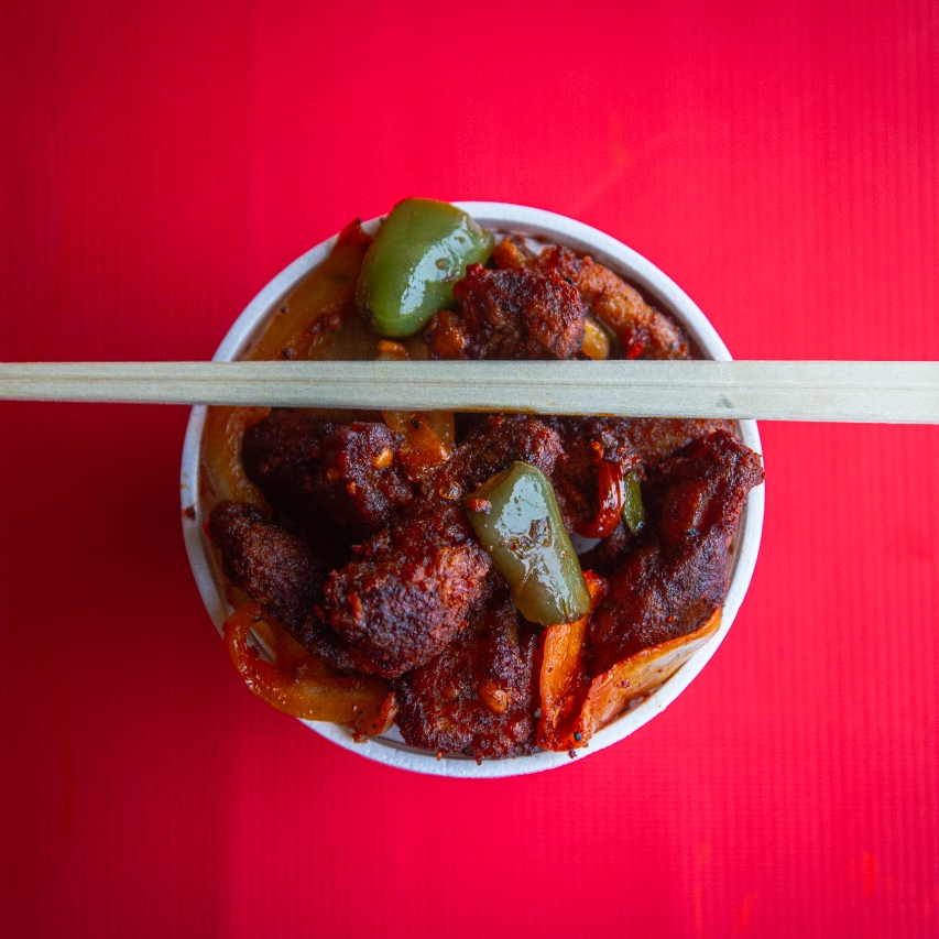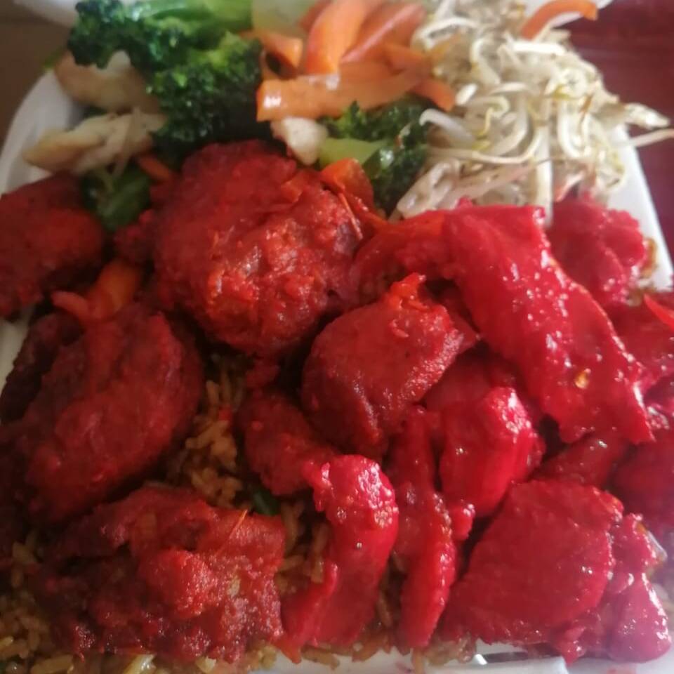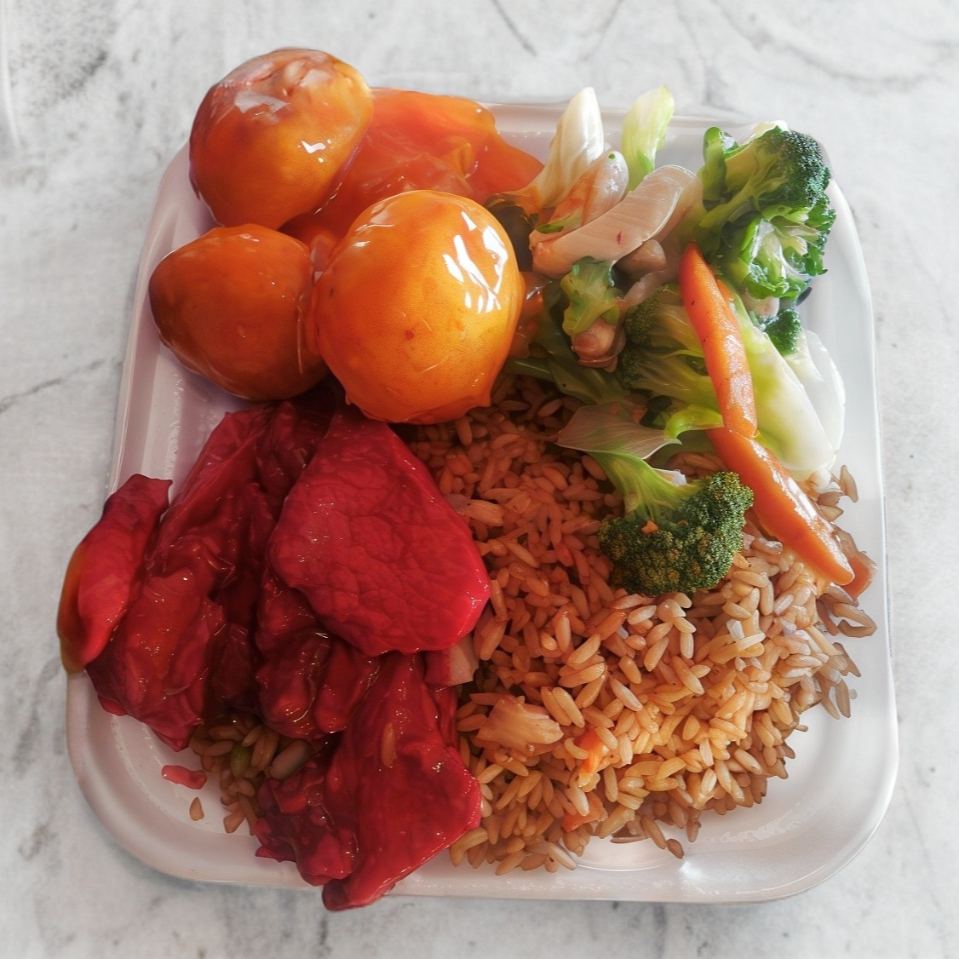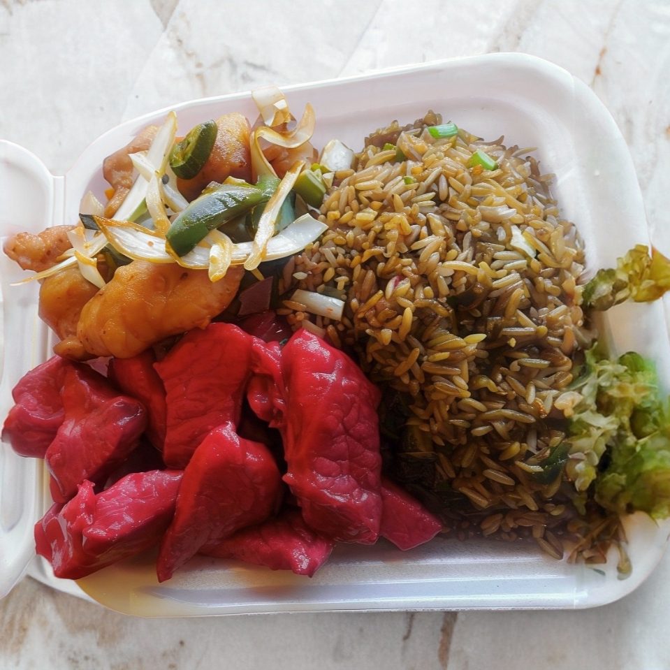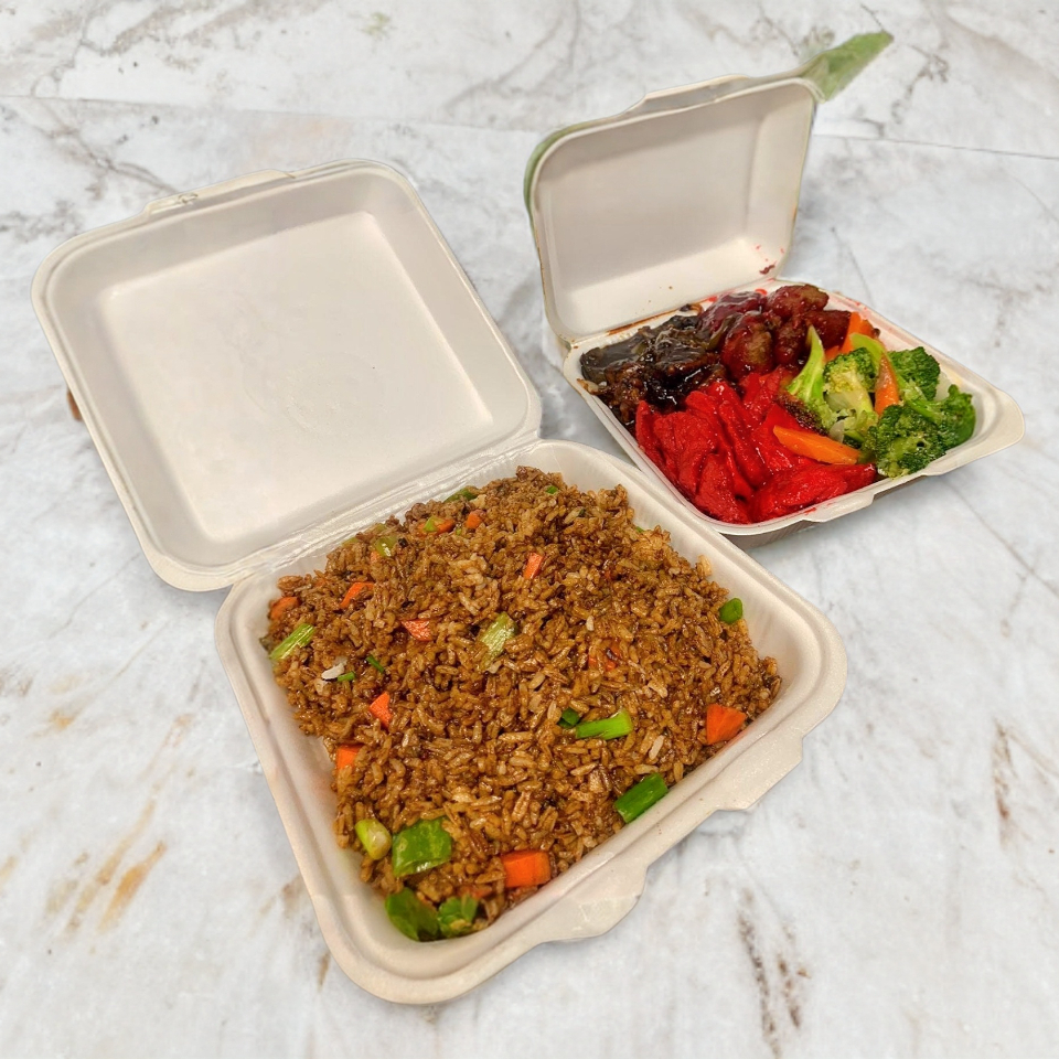 Incluye 1 litro de arroz, 1 litro de chop suey, 4 rollos y 1 guiso a elegir.