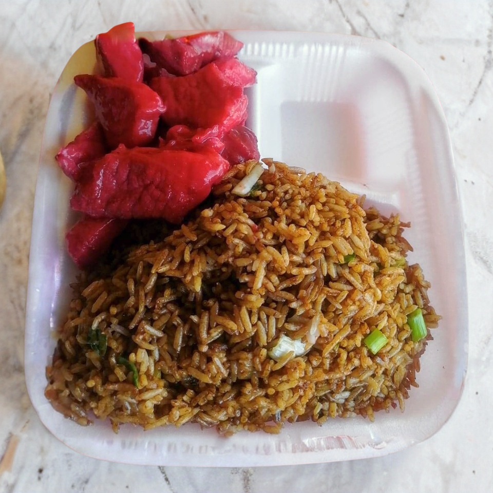 Arroz cantones, 4 guisos a elegir. Lleva el arroz en charola aparte gratis.