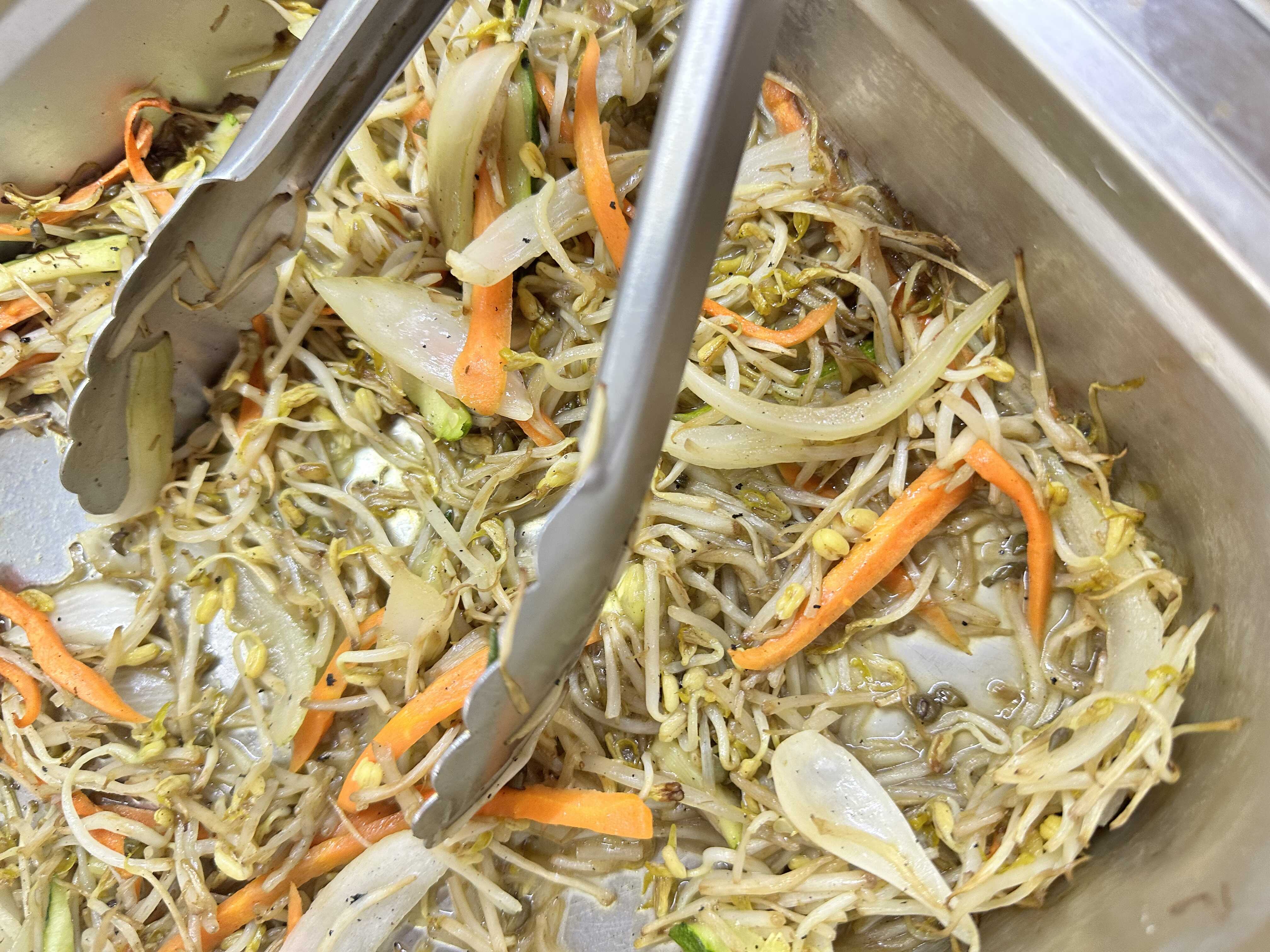 Arma tu plato eligiendo 3 guisados del menú, acompañados con arroz o tallarín. Porción individual.