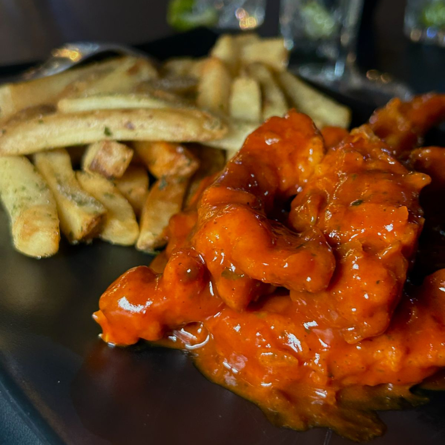 200 g de pollo empanizado con salsa a elegir, acompañado de apio y zanahoria.
