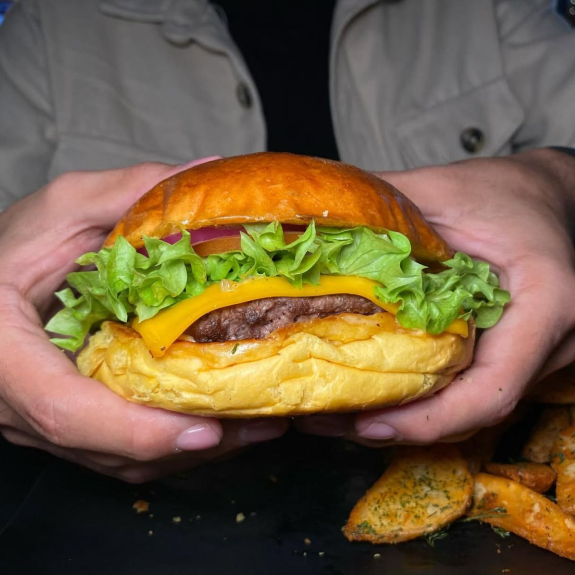 Todas las hamburguesas contienen aderezo de la casa, proteína, queso amarillo, lechuga, tomate, cebolla morada y papas a elegir.