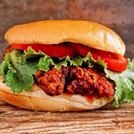 Pan con 100 g De boneless en salsa a tu elección, con lechuga, tomate, cebolla y 200 gr de papas a la francesa.