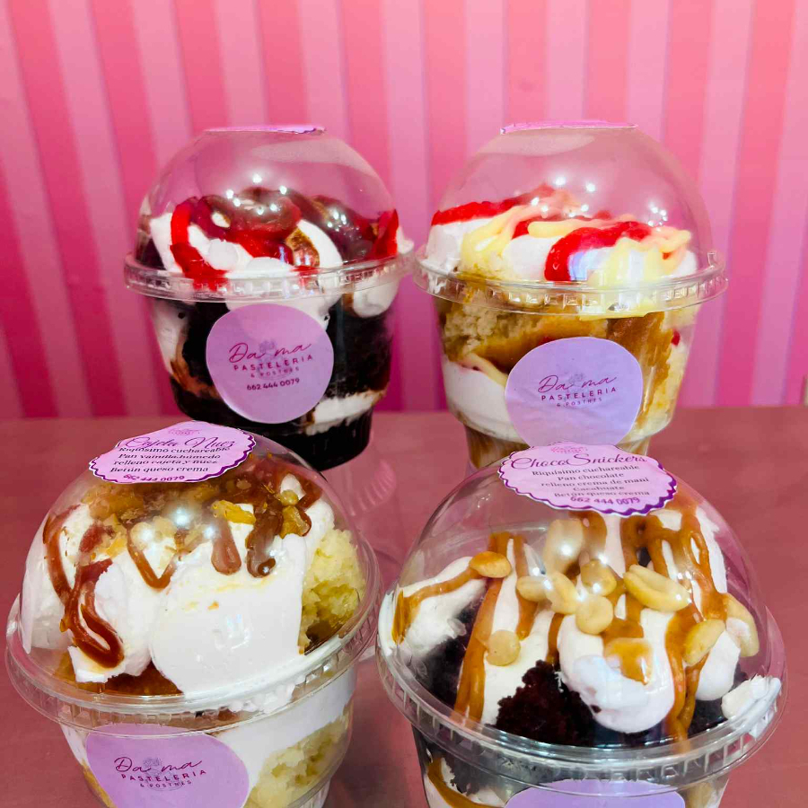 Riquísimo cuchareable de pan vainilla húmedo, relleno de mermelada de fresa y bavaria, betún queso crema.