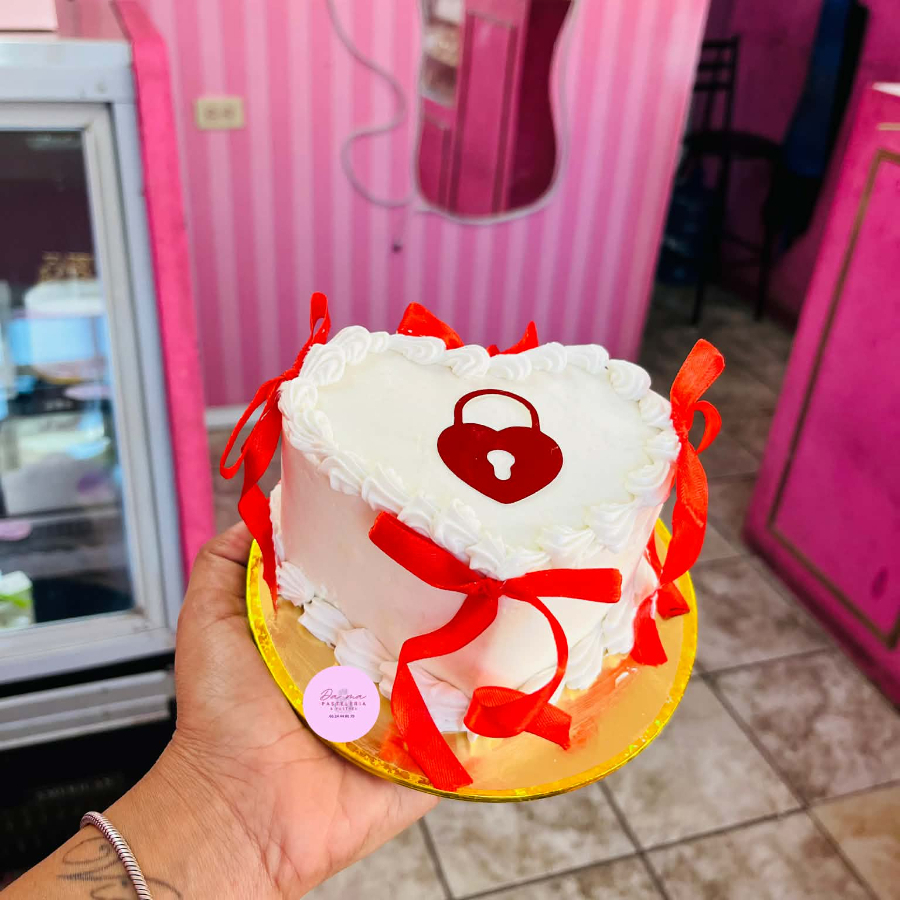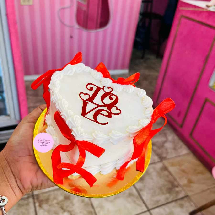Pastelito en forma de corazón 1-2 porciones, ideal para obsequio este 14 febrero. Incluye caja liston etiqueta y velita