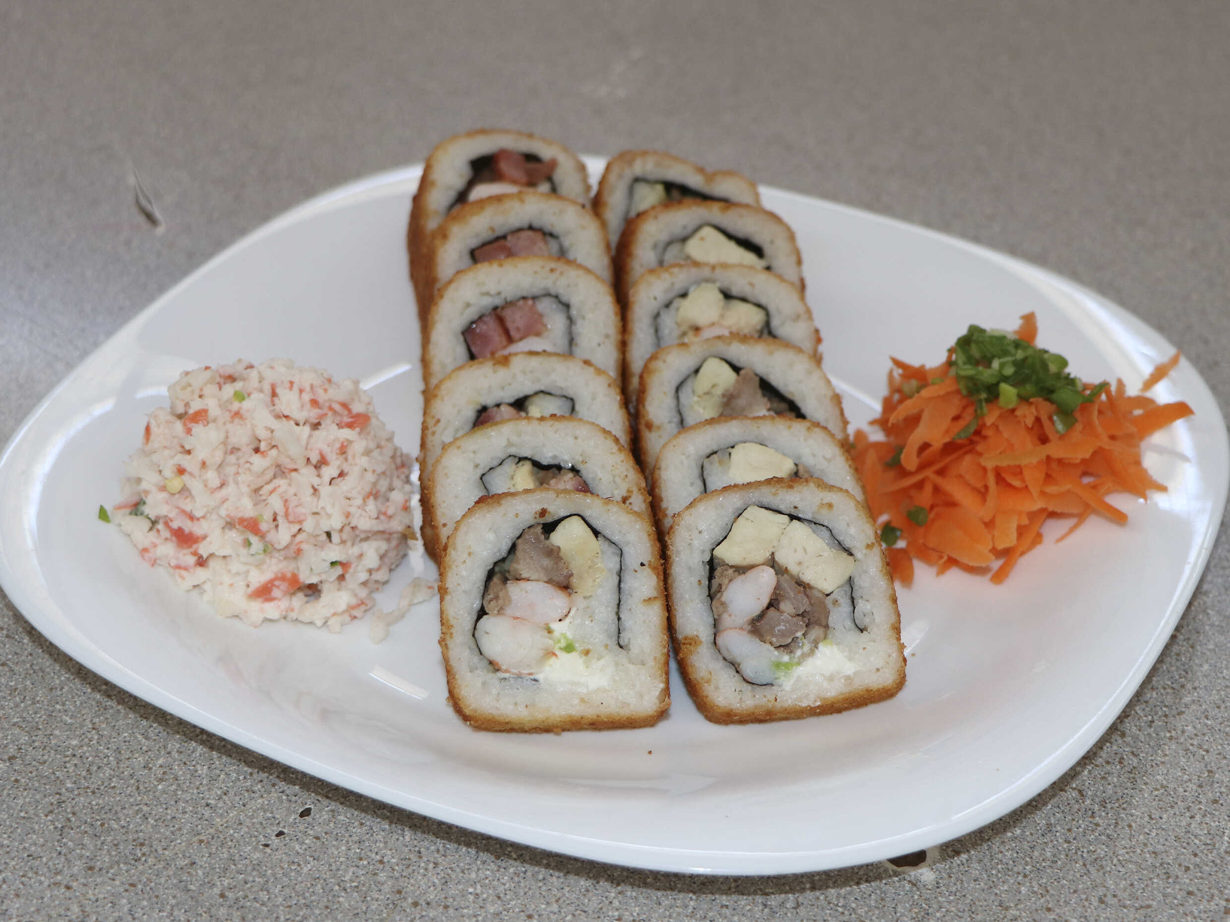 Res, pollo, camarón, queso crema, aguacate, no incluye tampico.