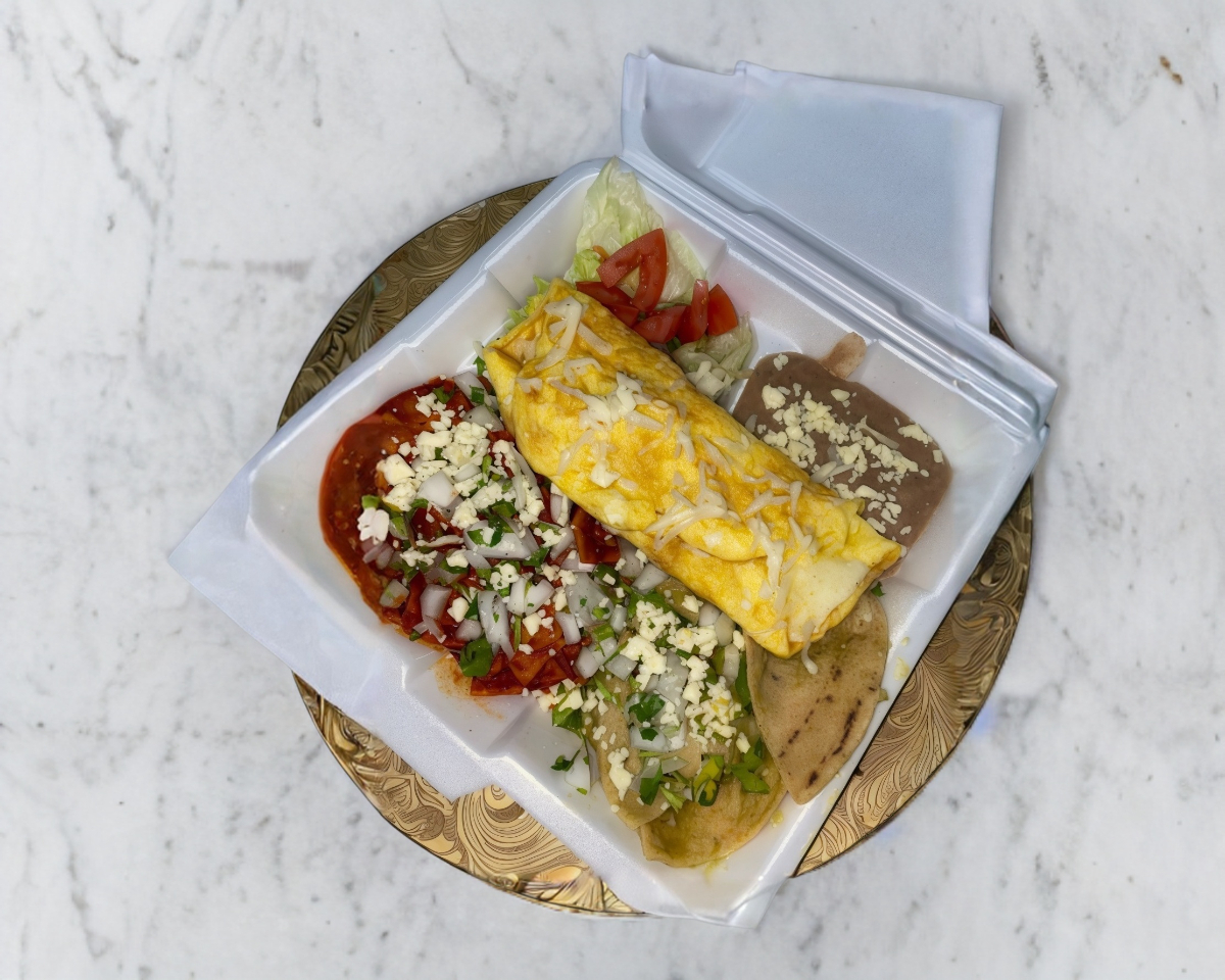 Orden de Burritos de Frijoles + Huevos Divorciados