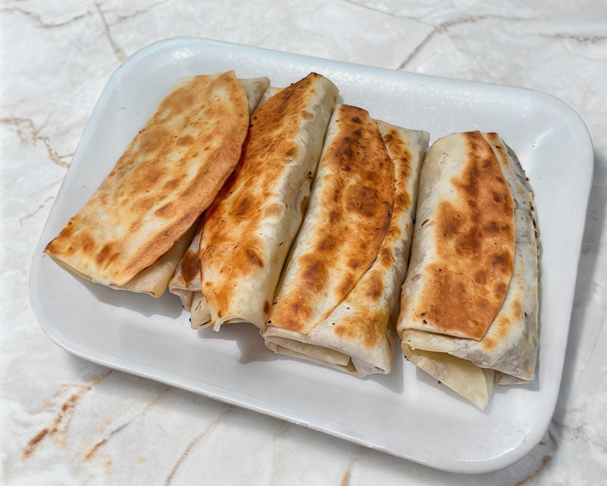 Orden de burritos de frijoles (4 piezas), tortilla de harina, frijoles guisados.