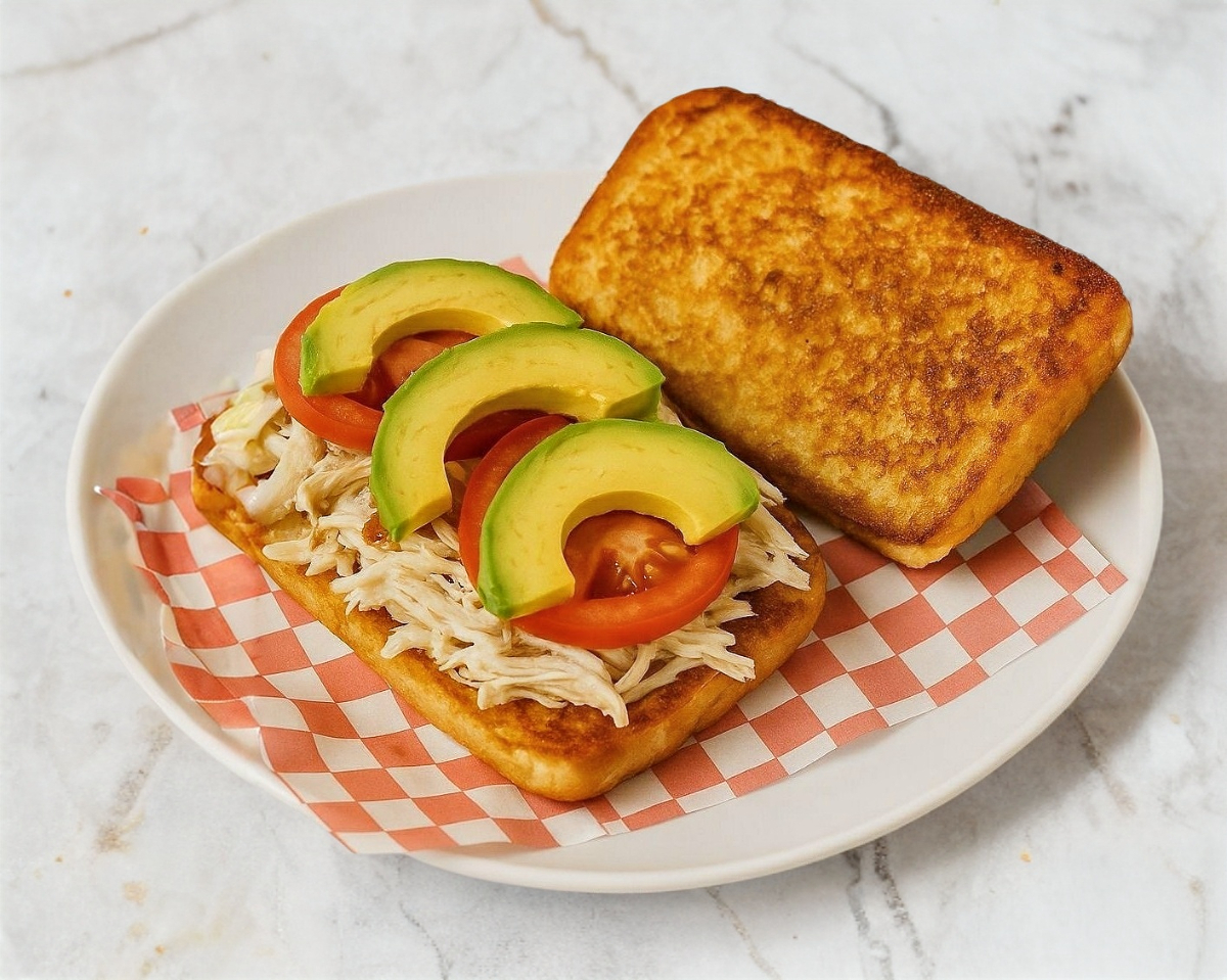 Torta de Pierna + Licuado de Fresa con Frutos R