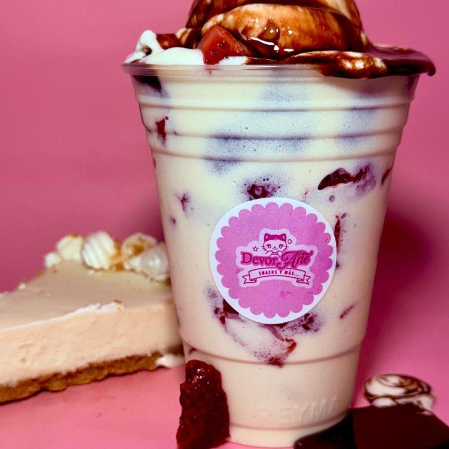 Crema receta de la casa, fresa natural en vaso de 14 oz