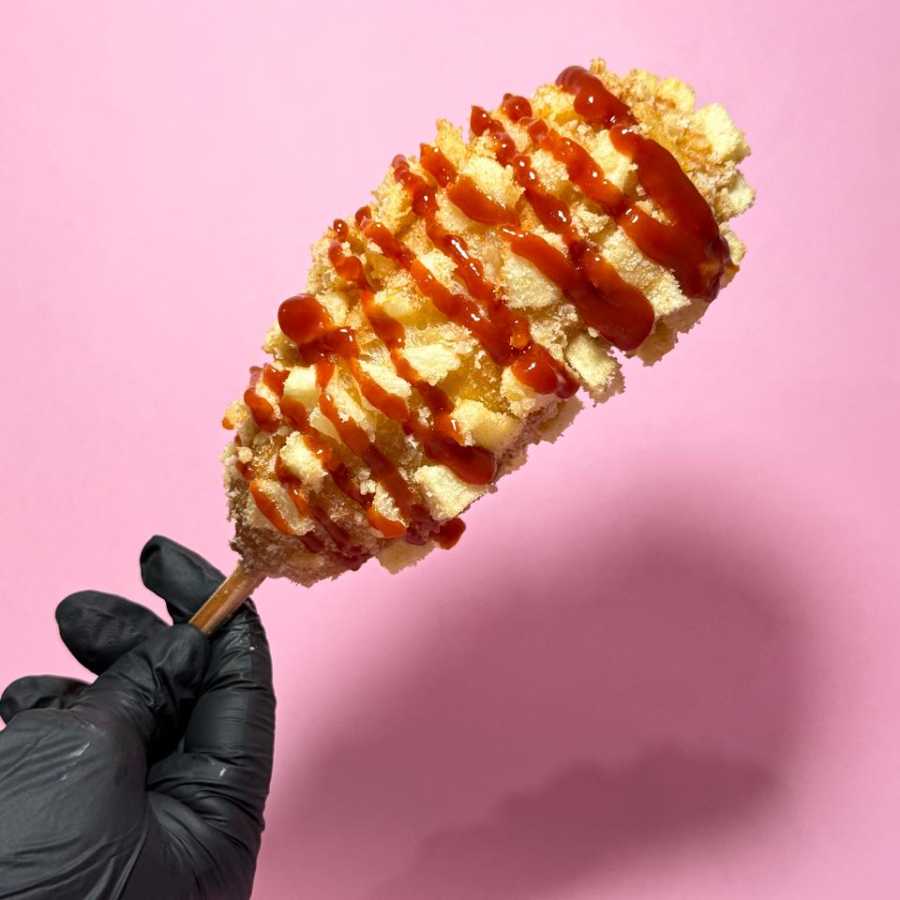 INDISPENSABLE ELEGIR INGREDIENTE. Masa receta exclusiva con granos de elote, empanizada con panko. Disfrútala con el topping de tu preferencia