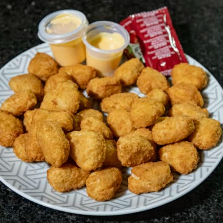 10 PIEZAS. INCLUYE POR SEPARADO QUESO CHEDDAR Y SALSA KÉTCHUP.