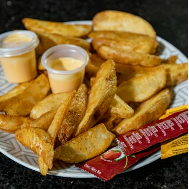 250 GRAMOS PESO PRODUCTO CONGELADO. INCLUYE POR SEPARADO QUESO CHEDDAR Y SALSA KÉTCHUP.