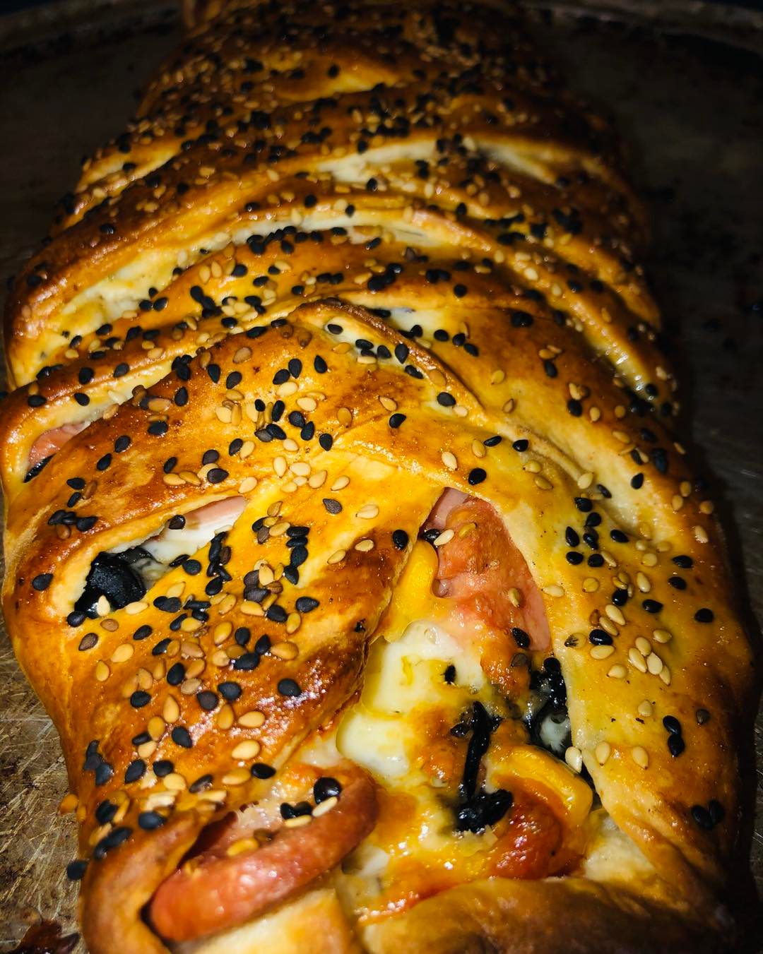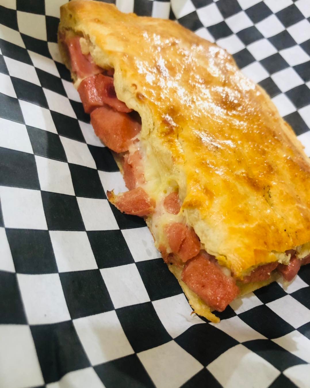Pasta hojaldrada rellena de jamón selecto y salchichas, con una mezcla de 3 quesos.