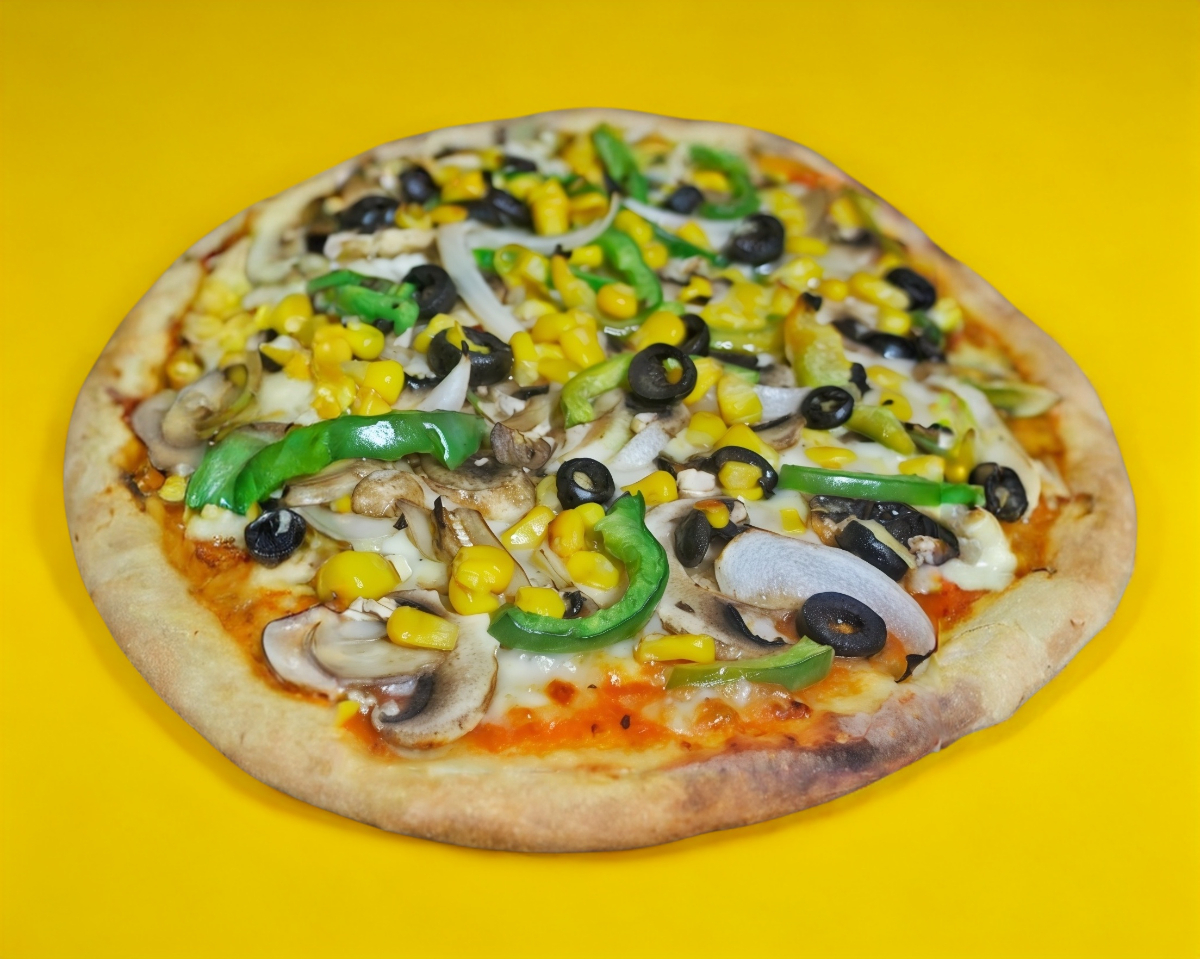 Champiñón, elote, pimiento, aceituna, cebolla.