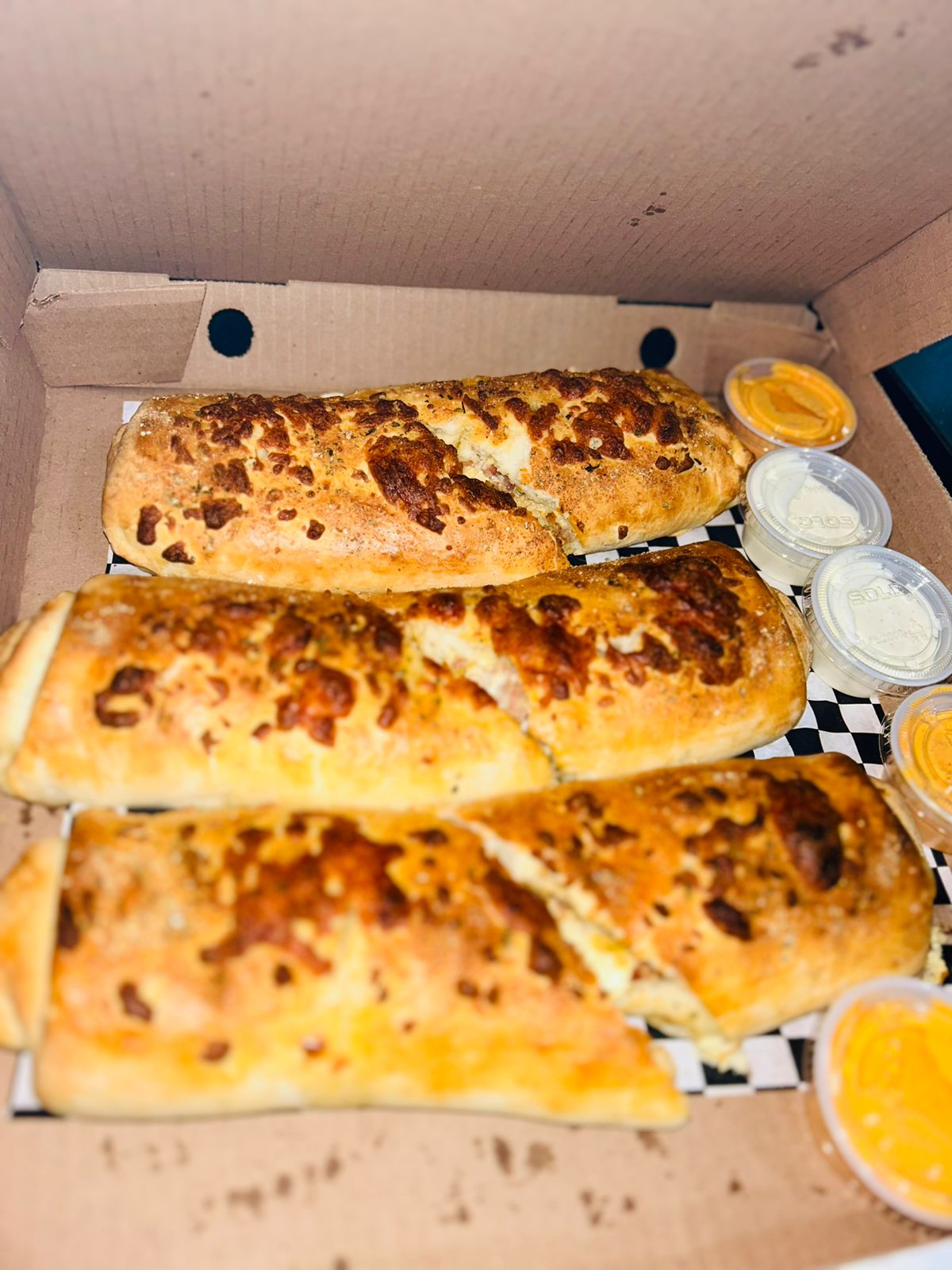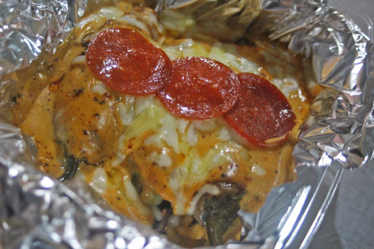(1 pieza) 35cm aprox, relleno de pollo, tocino y mezcla de quesos.