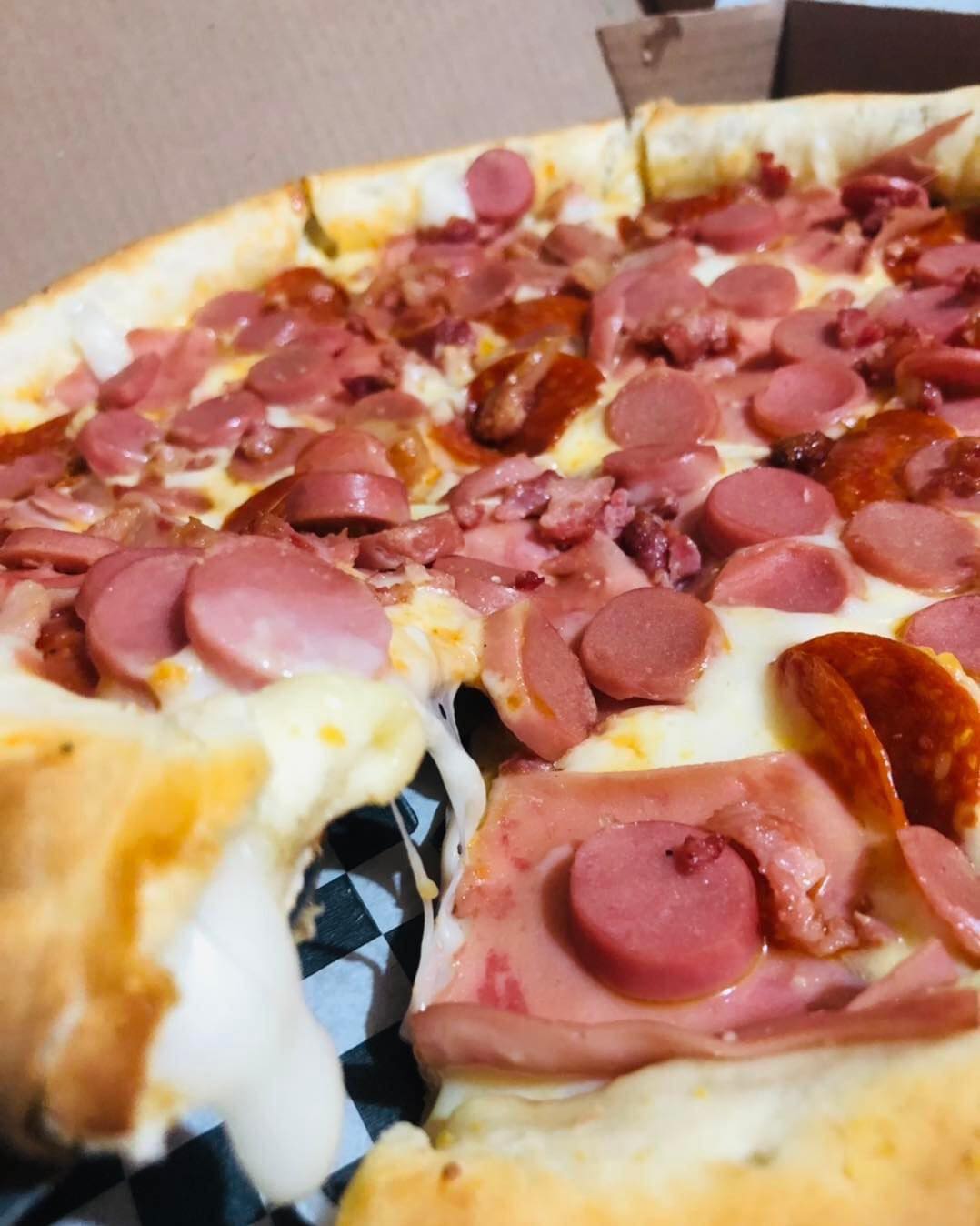 Pepperoni, champiñón, tocino, chilorio, pimiento, ajo y parmesano.