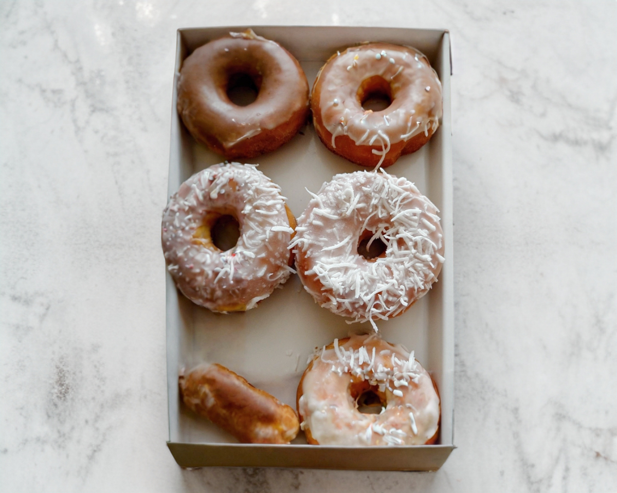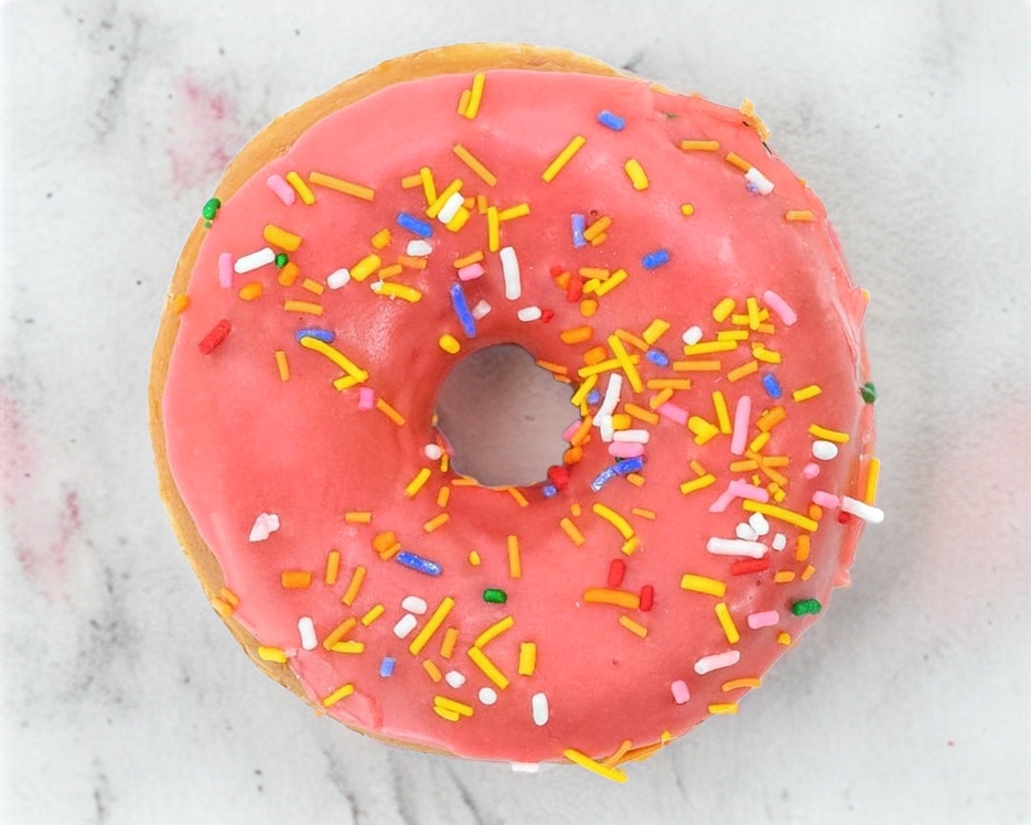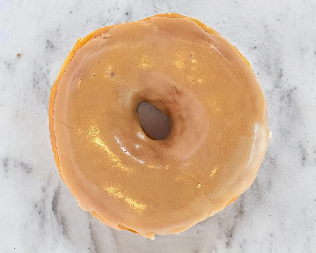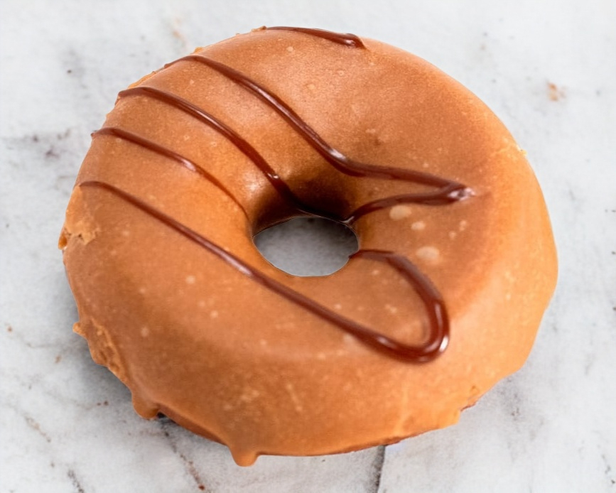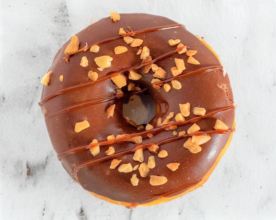 Dona rellena de dulce de tres leches y nieve, con cubierta de chocolate con nuez