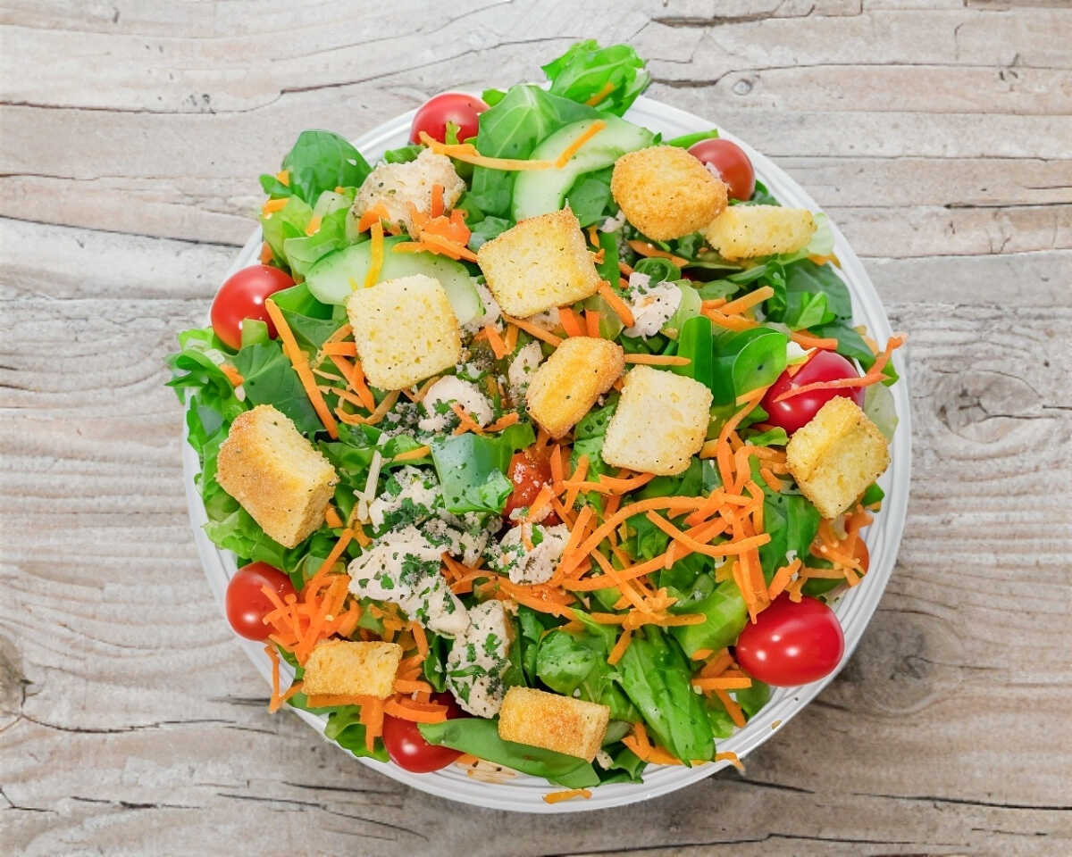 Porción para compartir 2 personas:Disfruta una fresca combinación de aproximadamente 170 g de pollo, con 4 opciones de barra a elegir. Acompáñala con el aderezo de tu preferencia y selecciona tu proteína favorita. Completa tu plato con ajonjolí, parmesano, chile quebrado, aceite de oliva y vinagre balsámico.