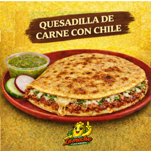 Quesadilla con carne con chile, en tortilla de maíz o harina
