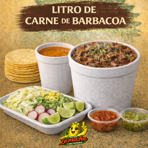 1 Litro de Carne de Barbacoa, Incluye Tortillas de Maíz, Verdura y Salsas.