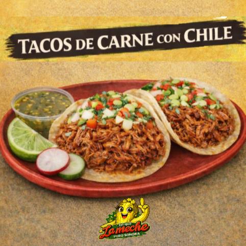 1 Taco de carne con chile servido en tortilla de maíz ó harina, verdura y salsa