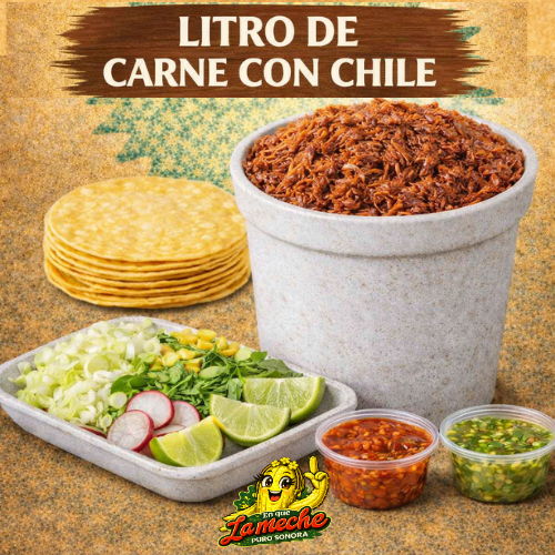 1 Litro de Carne con Chile, Incluye verdura, Salsa y Tortillas
