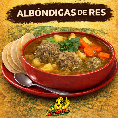 1 Plato de Albóndigas de Res, acompañado de tortillas de maíz.