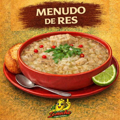 1 Plato de Menudo de Res, pan tostado con mantequilla, verdura, chiltepín aparte