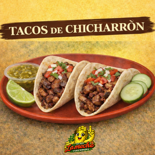 Taco de Chicharron de puerco servido en tortilla de maíz
