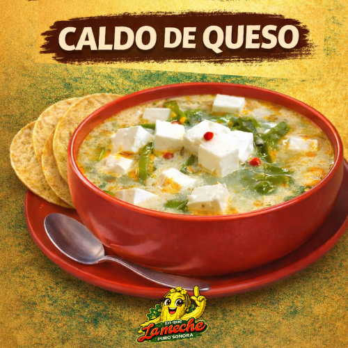 1 Plato de Caldo de Queso, acompañado de tortillas de maíz.