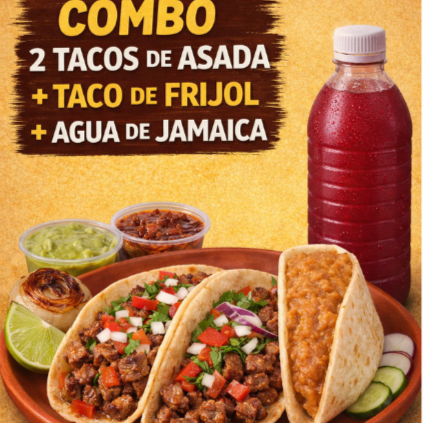 Taco de Asada*2 + Taco de Frijol*1 + Agua de Jamaica 1/2 Litro*1