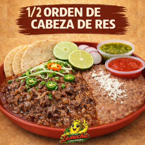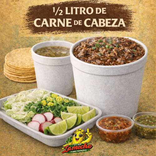1/2 Litro de Carne de Cabeza, acompañado de Tortillas de maíz, Verduras y Salsa