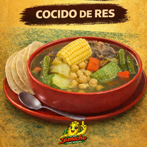 | Plato de Cocido de Res, acompañado de tortillas de maíz.