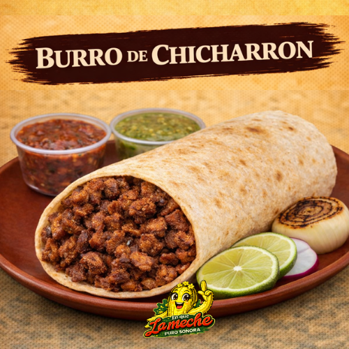 Burro de Chicharrón en tortilla grande de harina, con verduras/salsas aparte