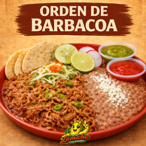 1 Plato de Caldo de Barbacoa, acompañado de Tortillas de Maíz y verduras/salsas de su elección.